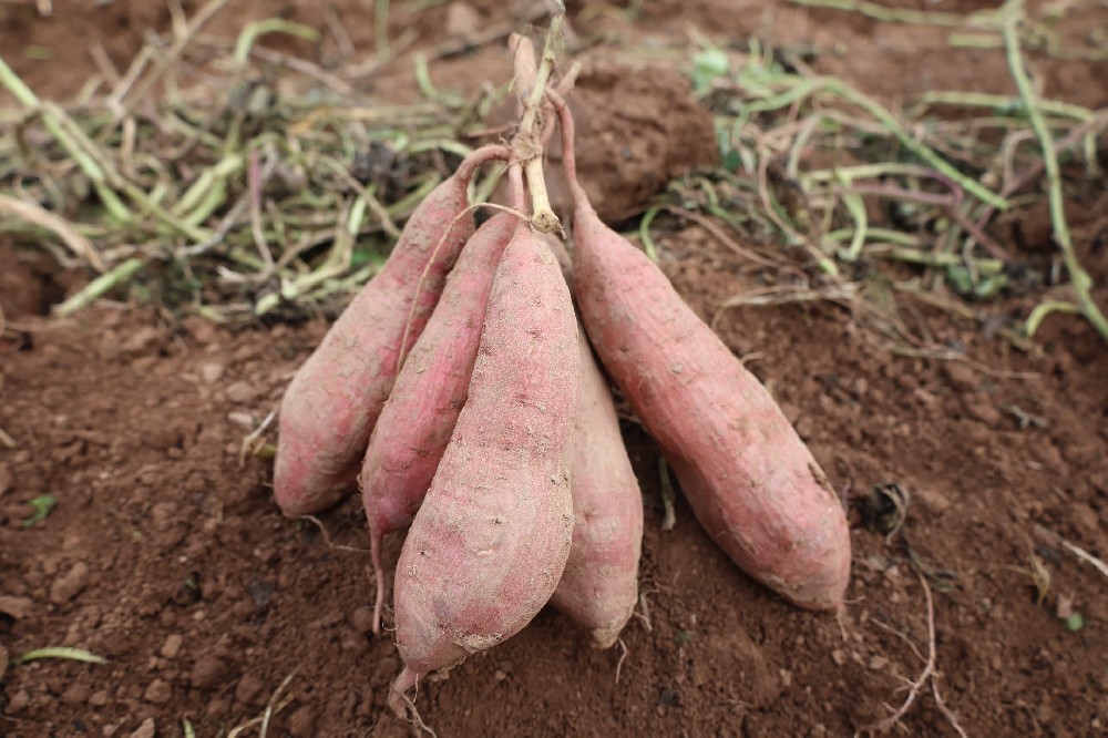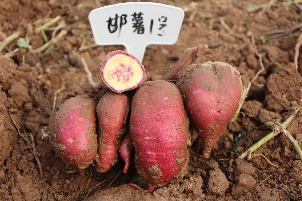 品种名称:邯薯1号申 请 者:邯郸市农业科学院;邯郸市禾下土种业有限公司作物种类:甘薯登记编号:GPD甘薯(2025)130039 品种来源:广薯87×龙薯28 特征特性:鲜食类型品种。中熟。生育期120天。植株生长习性甸匐,蔓长中等,平均基部分枝7个。无裂片品种心形,茎顶芽相对位置凹,茎顶芽花青苷显色强度无,茎顶端绒毛中等,叶中等绿色。薯块长纺锤,著皮中等红色,薯肉浅黄色。萌芽数量多,萌芽一致性一致,结薯习性集中。烘干率27.69%,淀粉率17.73%,粗蛋白1.47%,还原糖4.40%,可溶糖5.83%,胡萝卜素0.0689毫克/100克,花青素4.78毫克/100克。感根腐病,抗黑斑病,高感茎线虫病,抗蔓割病,高感薯瘟病。鲜薯产量:第1生长周期亩产3764.8千克,比对照商薯19增产4.63%;第2生长周期亩产2975.5千克,比对照商薯19减产20.90%;薯...