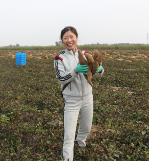 育种人王庆美介绍了济紫薯1号特点,花青素含量高,平均含量76.38mg/100g鲜重,干物质和淀粉含量高,干物质含量36%—40%,淀粉含量25%—27%,口感好,鲜薯蒸煮后粉而糯,有玫瑰清香,目前已成为国内紫甘薯加工的首选品种。适用于北方薯区和长江流域薯区作为花青素紫薯类型品种种植利用。